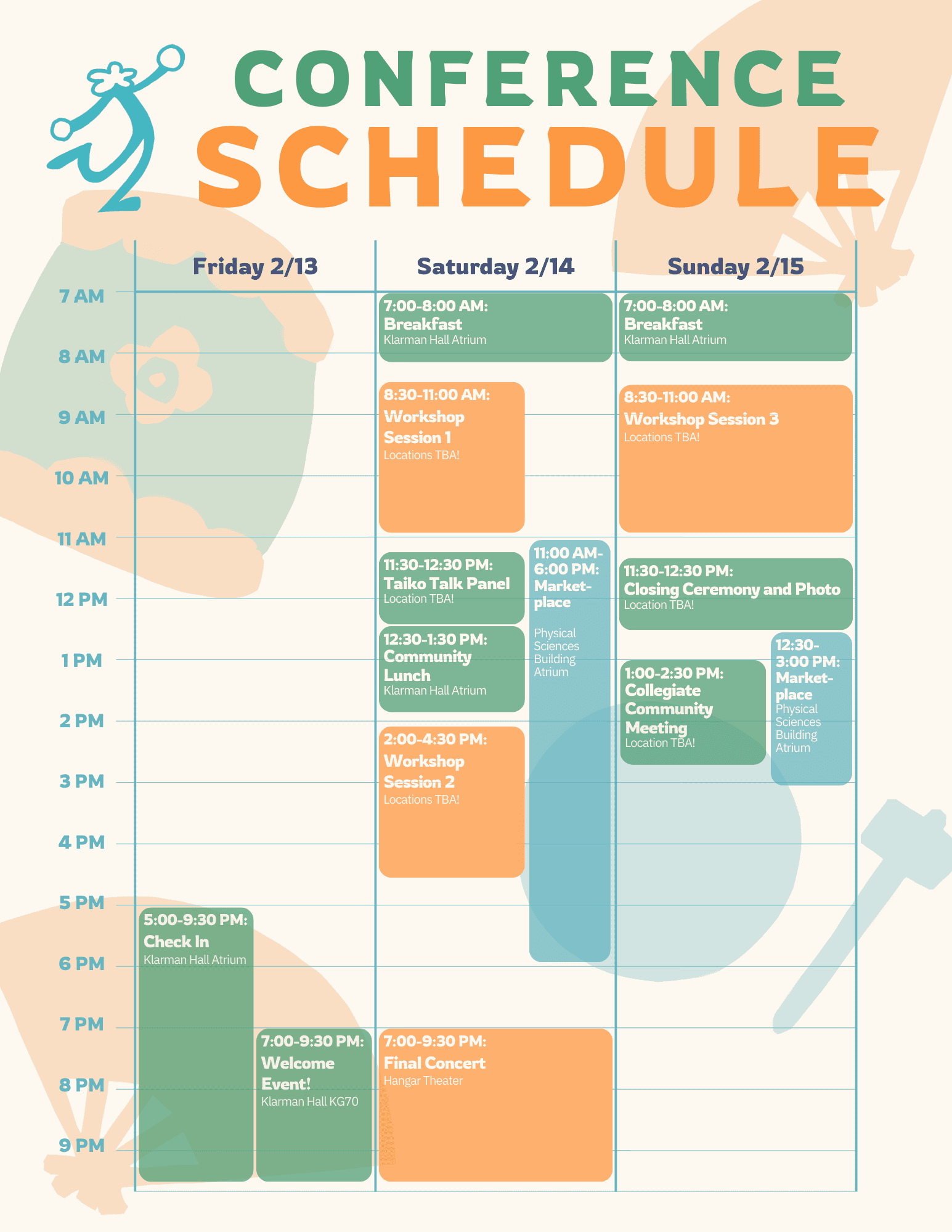 The ECTC 2026 schedule will be filled with opportunities to engage with the taiko community, explore the marketplace, attend workshops, and meet new people throughout the weekend!